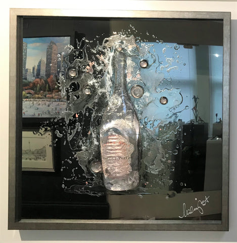 - Framed Liquid Glass on Aluminium Panel with swarovski Crystals